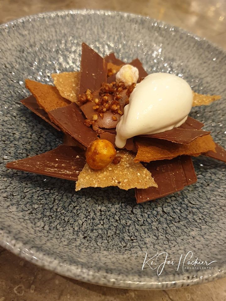 Dessert : Rose des sables au poivre de Timut, chocolat bitter et vanille de Nouvelle GuinéeUn dessert très gourmand et contemporain avec ses multiples strates aux goût et textures