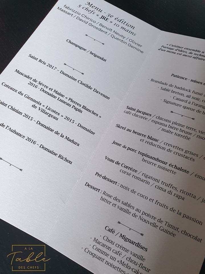 Le chef résident (et général Food Manager) de LaM.U., Fabrizzio Chirico s’est entouré pour cette troisième version des “Pots aux fourneaux”, de quelques amis chefs, tous membres de cette belle association des Jeunes Restaurateurs d’Europe (JRE) venus des quatre coins de la Belgique.