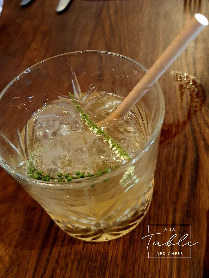 L’apéro du jour est un mélange de gin, de Chant d’Eole et de mélilot.
