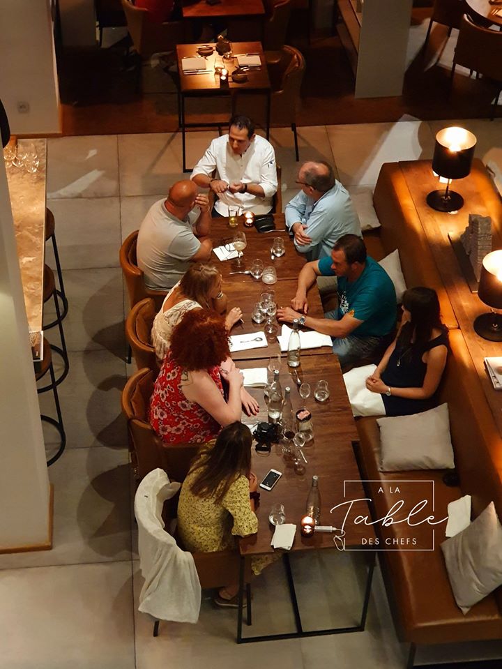 Notre table de joyeux drilles – Lothar et sa compagne, Alain Stennier, son épouse Dominique, leur fille Perrine, Michel Drion, Ki-Jai et moi – avons continué la soirée dans la bonne humeur, avec Fabrizzio venu nous rejoindre à table.