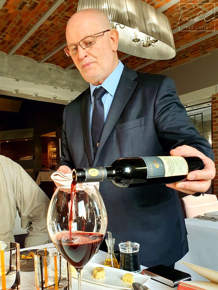 Carlo Zecchin règne (en seul maître) sur une cave comptant plus de 1500 références qui surprendra même les oenolognes les plus avertis. Premier sommelier de Belgique en 1978, Carlo est également chef de « sa » salle et veille sur la clientèle avec cette bienveillance qu’il a pour sa carte des vins. Elle figure d’ailleurs à ce jour, parmi les plus belles du pays .