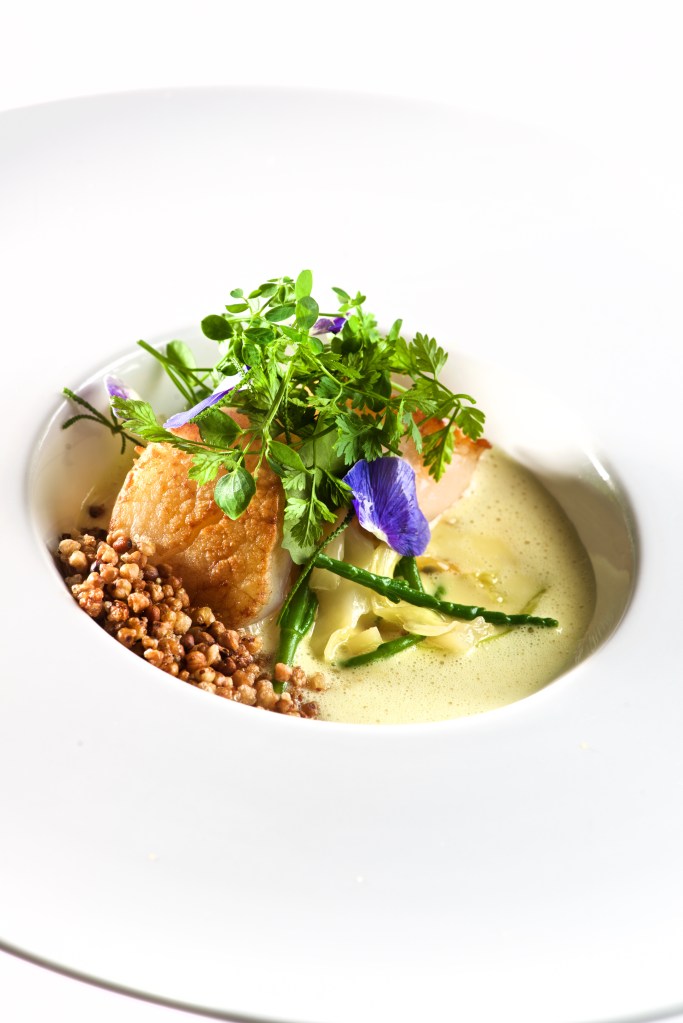 - Déposer les saint-Jaques snackées par-dessus, le mélange d’ herbes et le sarrasin soufflés