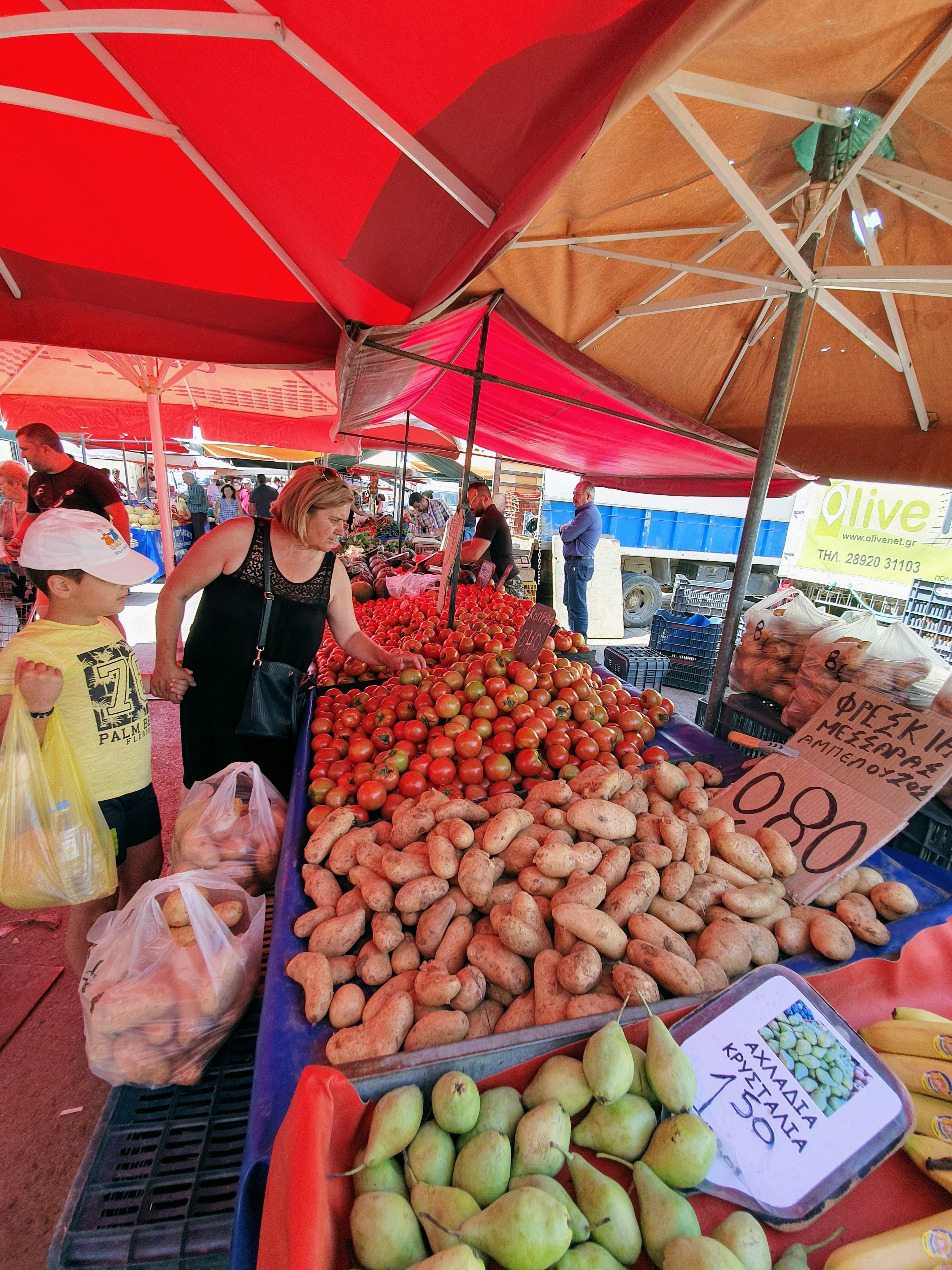 Un bon endroit pour voir ce qu’il y a d’offert, c’est le marché de rue local de la ville. Il y a des marchés différents tous les jours de la semaine à Chania (dans différentes rues) mais le plus beau est probablement celui du samedi. Si ce n’est à Chania, demandez simplement à n’importe quel habitant du coin où se trouve le marché le plus proche (appelé « laïki » en Grec).
