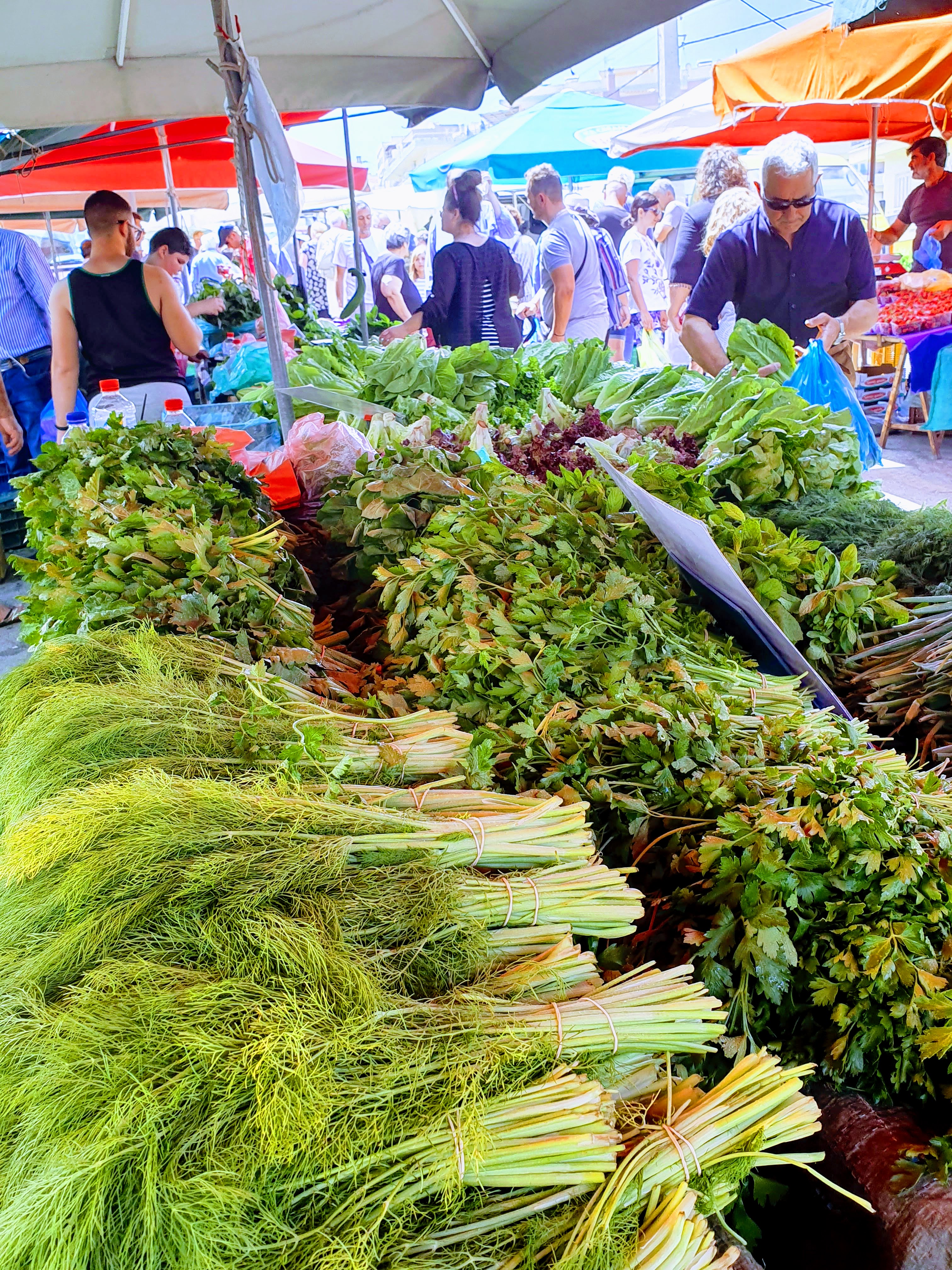 Ceci recouvre toutes sortes d’herbes vertes sauvages (cependant de nos jours certaines sont cultivées) au goût généralement amer. Elles sont bouillies jusqu’à ce qu’elles deviennent tendres puis elles sont servies avec une quantité variable d’huile d’olive et un peu de citron. C’est la nourriture des paysans par excellence: saine, savoureuse et gratuite. Si pourtant vous les achetez dans un magasin vous devrez payer assez cher certaines des variétés les plus intéressantes (stamnagathi par exemple) à cause du travail que cela implique pour les ramasser et les nettoyer.