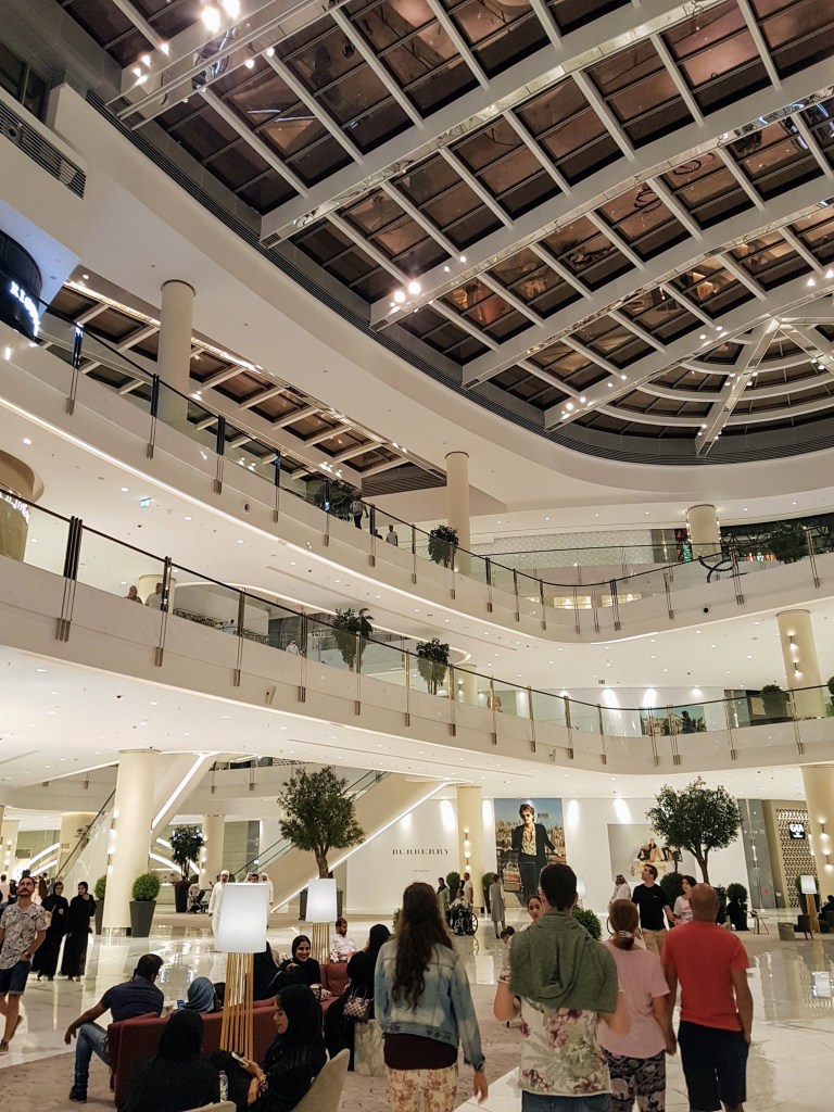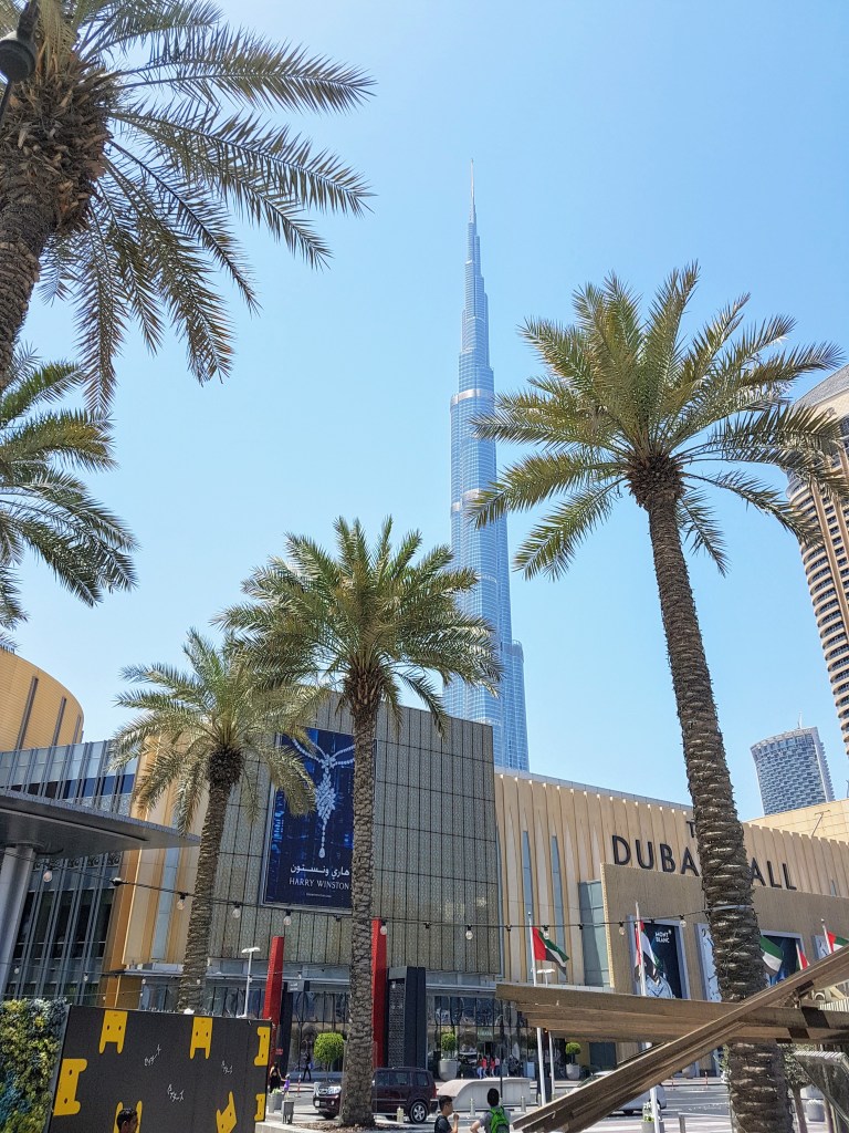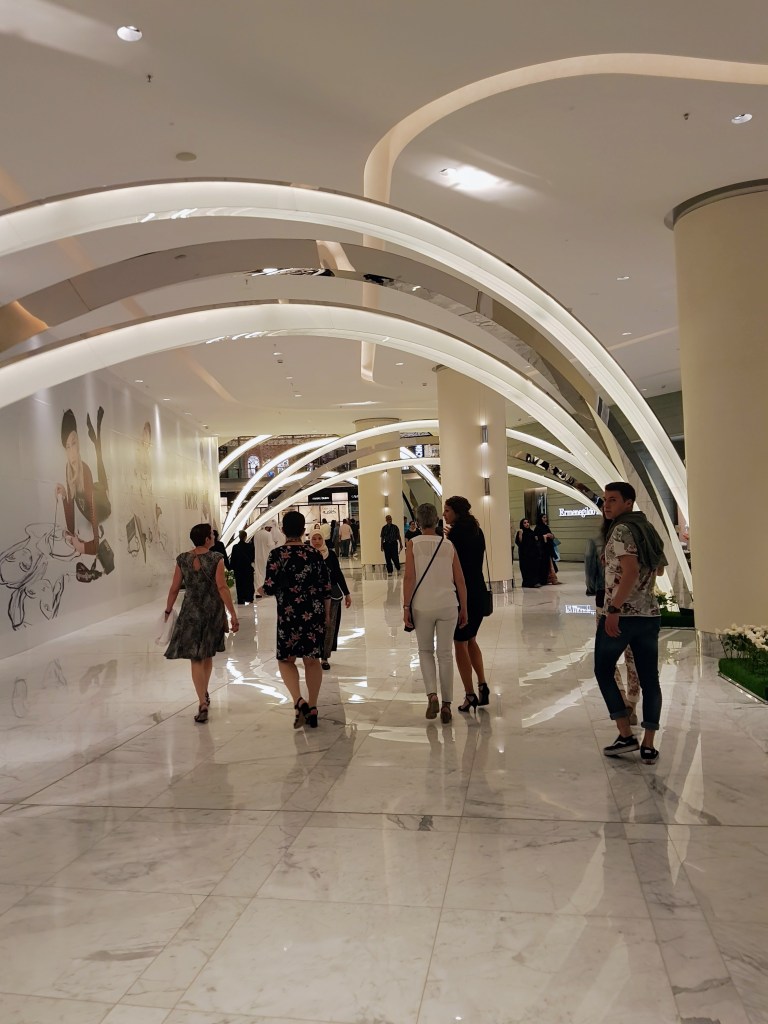 Le plus grand centre commercial du monde, avec plus de 1 200 magasins et 14 000 places de parking, un gigantesque aquarium, un cinéma, une piste olympique de patinage sur glace, le plus grand cinéma de Dubaï, …