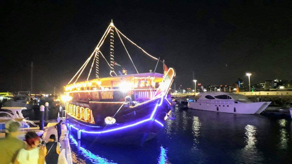 Pour seulement 39€, la prise en charge à l’hôtel, le transfert jusqu’au quai, croisière le long de Dubai Creek, dîner-buffet avec boissons à volonté et transfert de retour. Si vous préférez naviguer le long de la nouvelle zone (ce qui est mieux selon moi), le prix est de 50€ en incluant tout ce qui a été énoncé précédemment.