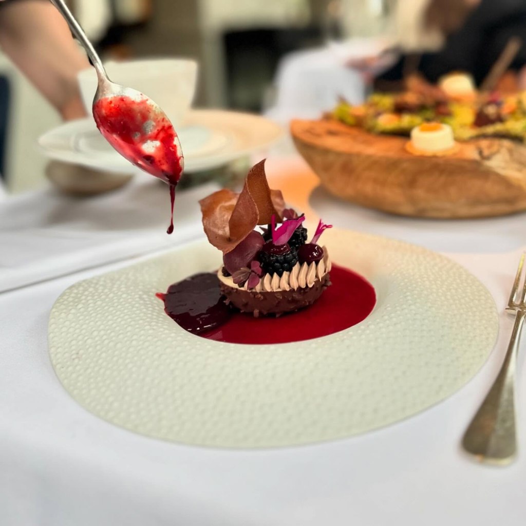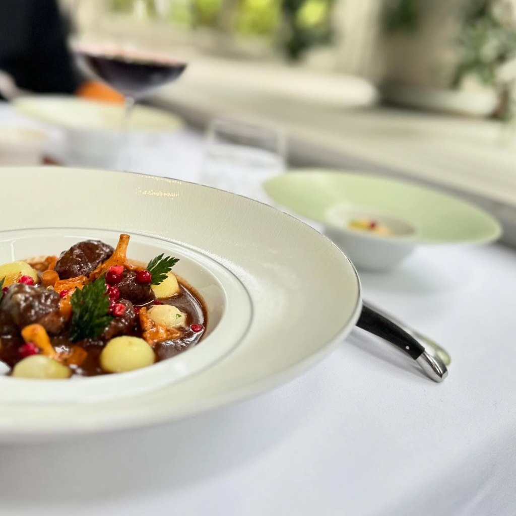 Mention spéciale également pour le civet de chevreuil, pommes, céleri, girolles et airelles et sa raviole maison à l’effiloché de chevreuil.