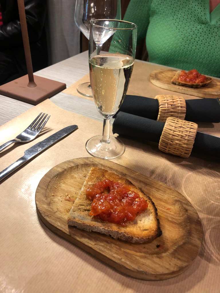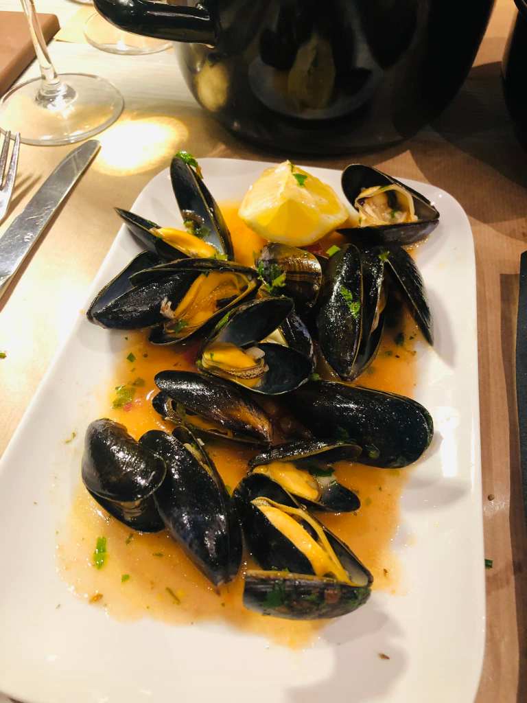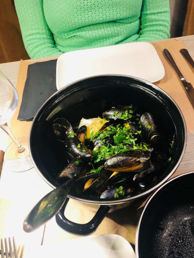 Soirée sympa dans un établissement à l’ambiance sicilienne. Prosecco et bruschetta pour commencer, suivi de moules à l’italienne et d’un mijoté de viandes mixte porc et bœuf ensuite spaghetti aux palourdes parfaitement exécutés et d’une roulade de viande de veau. Tiramisu, pour terminer. Le Noto, un restaurant Trattoria que je vous le conseille vivement.